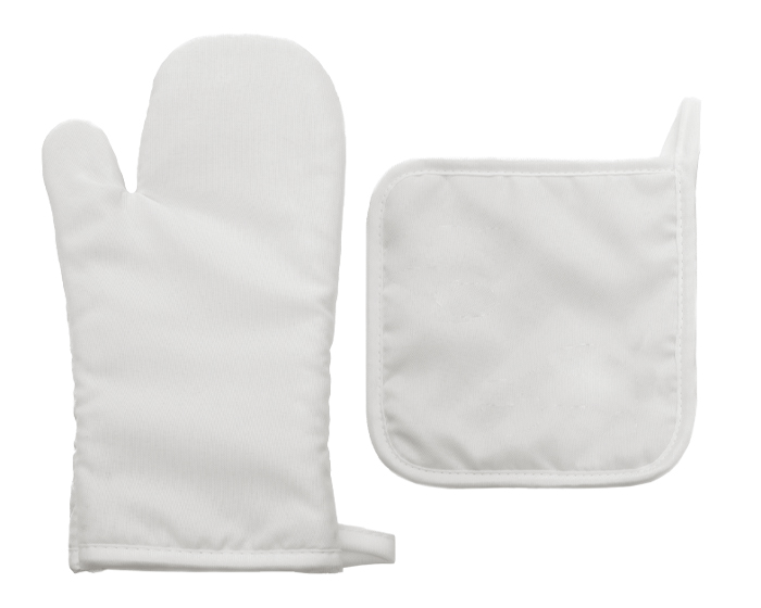 SET DE GUANTE Y AGARRADOR P/COCINA PONCHO A3184 BLANCO (POLIÉSTER / A3184.01 / ARTICULOS PROMOCIONALES)