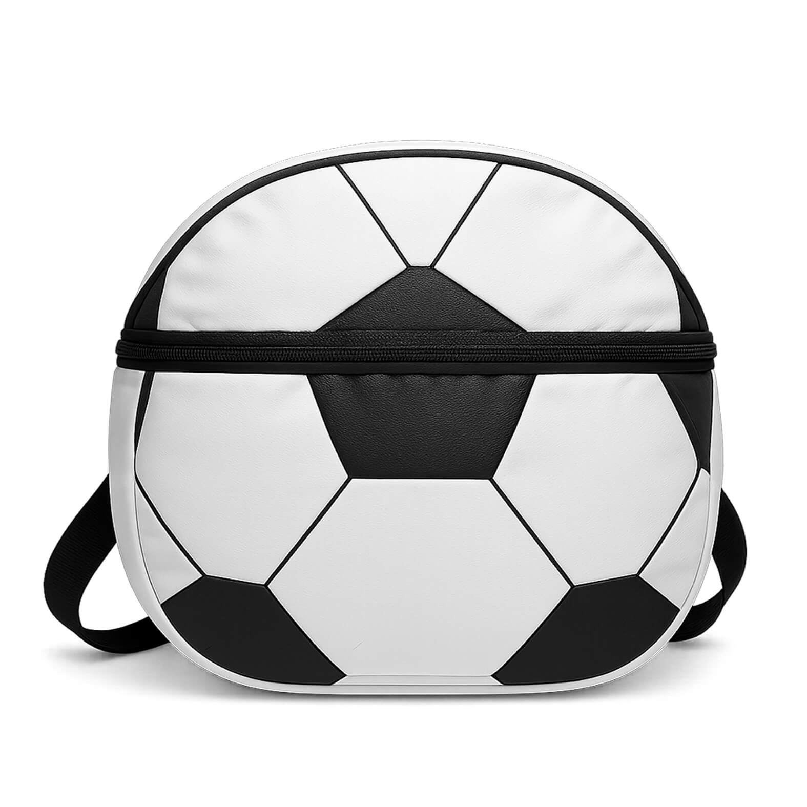 🏷️Descripción del producto Hielera de poliéster con interior impermeable plástificado, compartimento con cierre en la parte frontal, correa ajustable y print de balón de soccer.