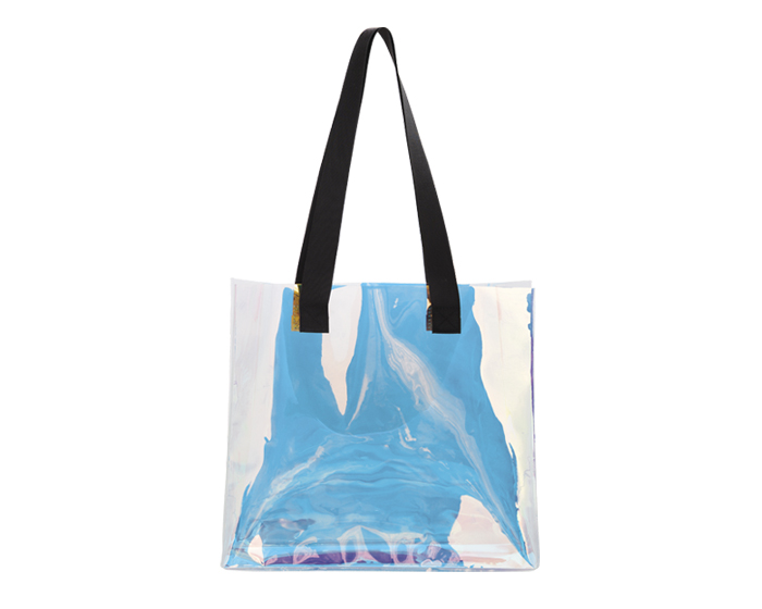 Bolsa con fuelle efecto tornasol con asas de color de poliéster.