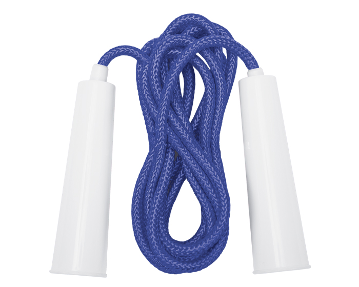 Cuerda para saltar de poliéster con mango de plástico ajustable.