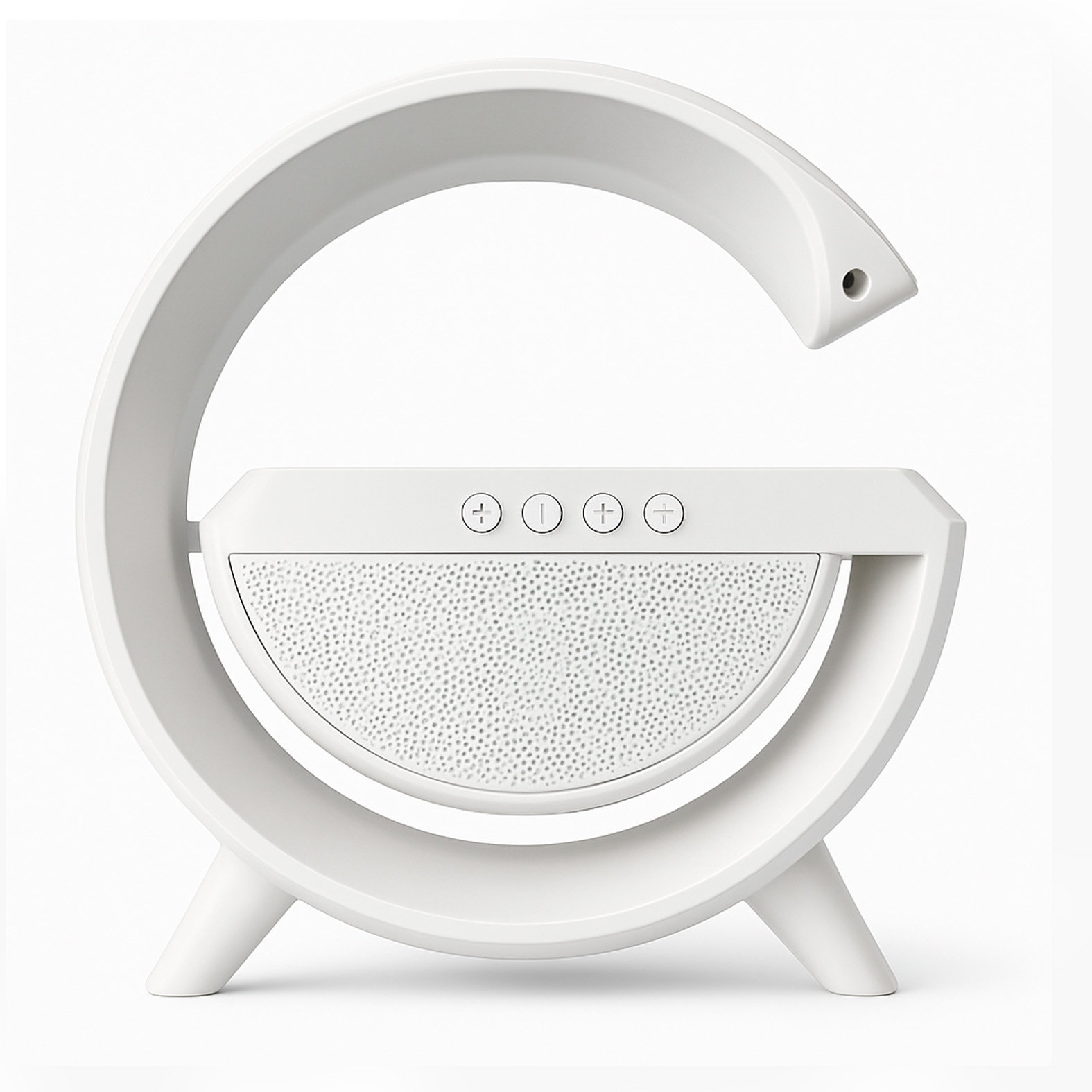 Bocina con bluetooth con luz de 7 colores y cargador wireless de 15 W. Compatible con smartphones con tecnología Qi, incluye cable de carga..